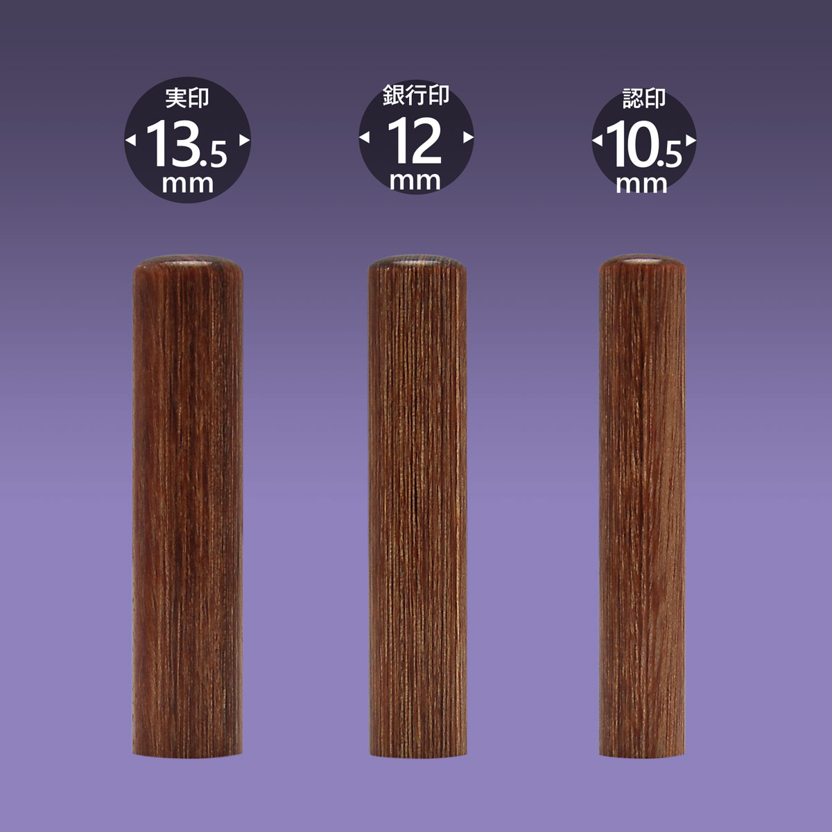 実印丸寸胴13.5ミリ・銀行印丸寸胴12ミリ・認印10.5ミリの3本セットです。
