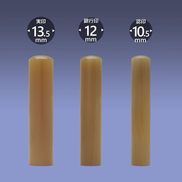 実印丸寸胴13.5ミリ・銀行印丸寸胴12ミリ・認印10.5ミリの3本セットです。