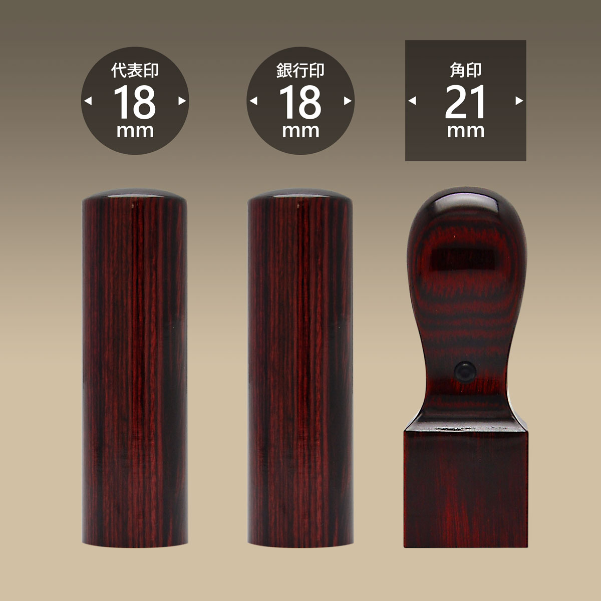 代表印丸寸胴18ミリ・銀行印丸寸胴18ミリ・角印角天丸21ミリの3本セットです。