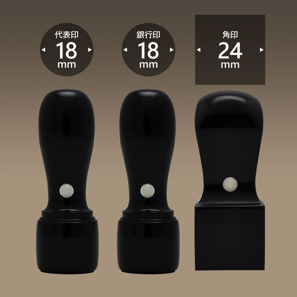 代表印丸天丸18ミリ・銀行印丸天丸18ミリ・角印角天丸24ミリの3本セットです。