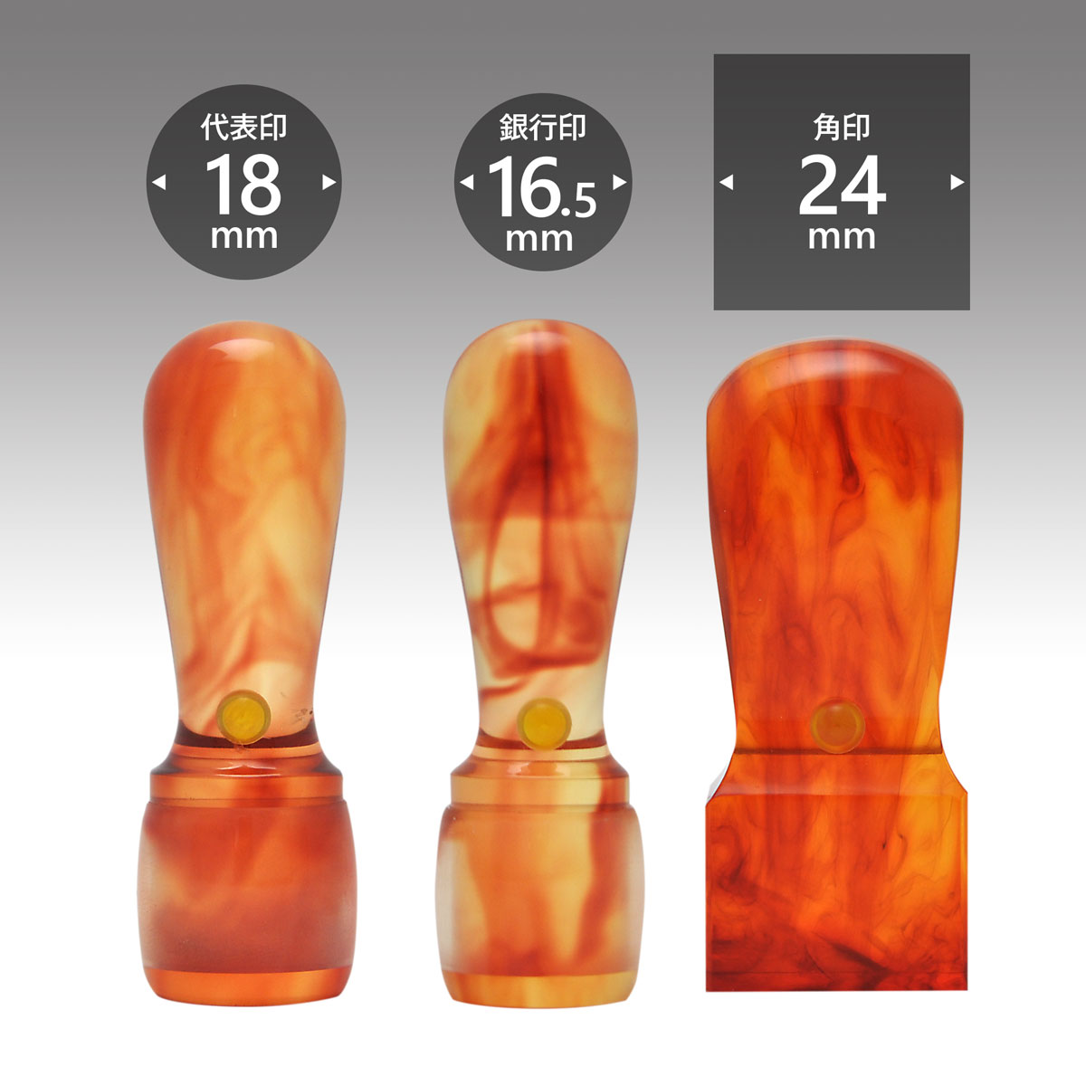 代表印丸天丸18ミリ・銀行印丸天丸16.5ミリ・角印角天丸24ミリの3本セットです。
