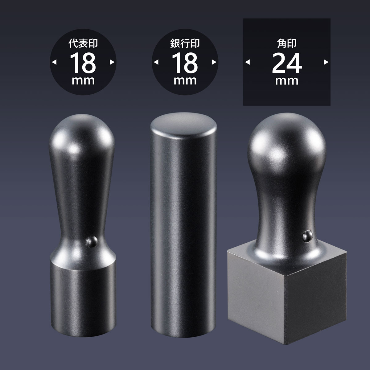代表印丸天丸18ミリ・銀行印丸寸胴18ミリ・角印角天丸24ミリの3本セットです。