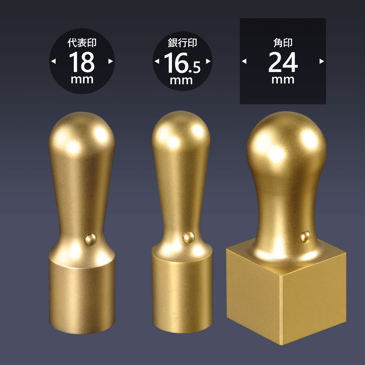 代表印丸天丸18ミリ・銀行印丸天丸16.5ミリ・角印角天丸24ミリの3本セットです。