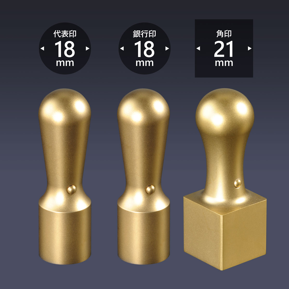 代表印丸天丸18ミリ・銀行印天丸18ミリ・角印角天丸21ミリの3本セットです。