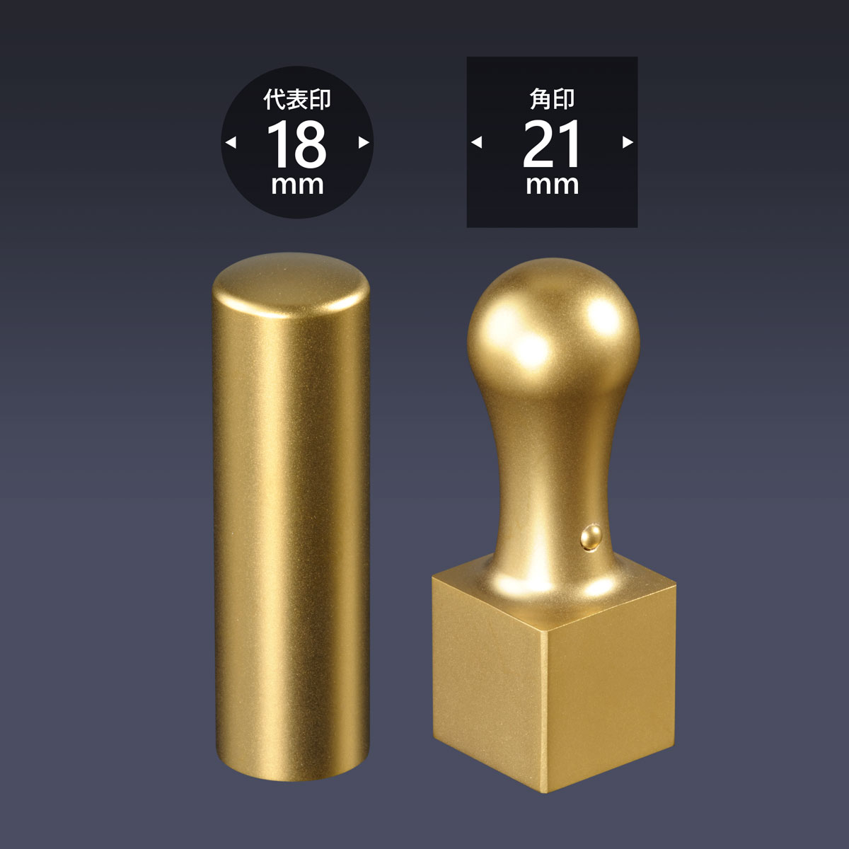 代表印丸寸胴18ミリ・角印角天丸21ミリの2本セットです。